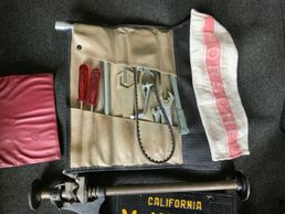 Owners manual with folder, tool kit, tire jack, both California black license plates